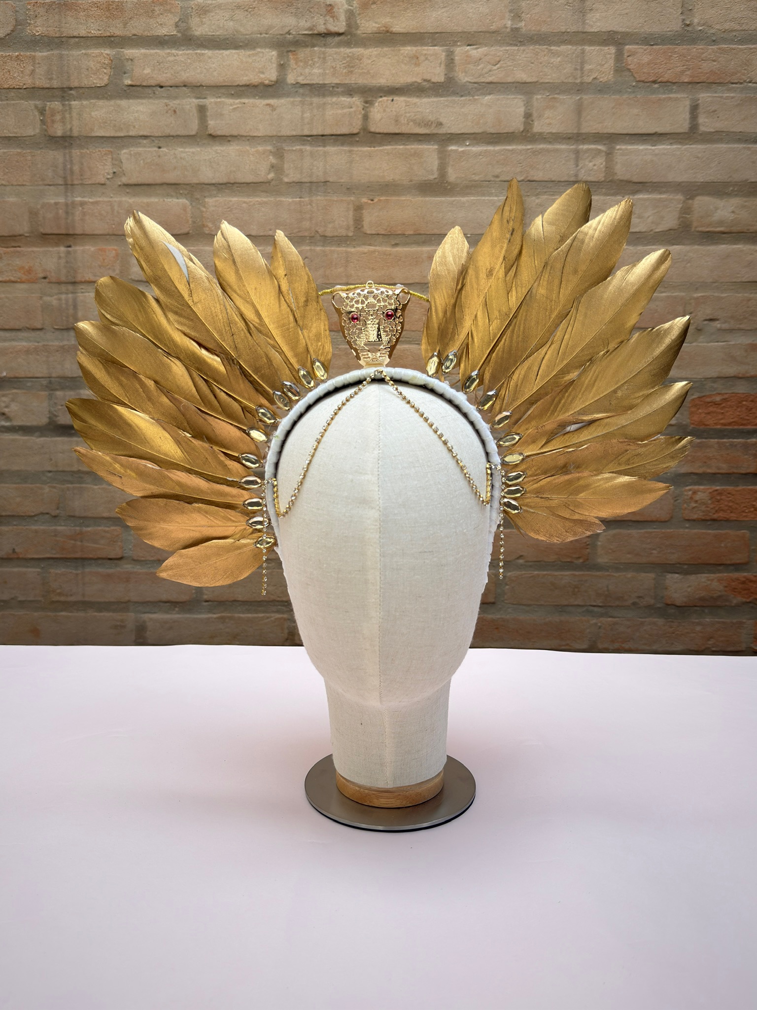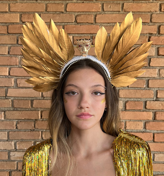 Tiara imponente com Penas e adorno em metal